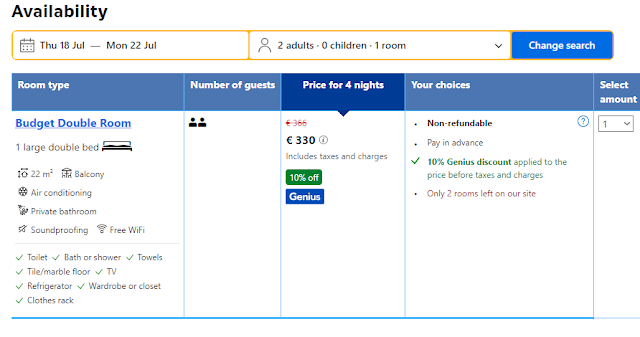 Οι παραπάνω τιμές βασίζονται σε δίκλινο δωμάτιο με διαμοιρασμό των εξόδων διαμονής μεταξύ των δύο ατόμων.